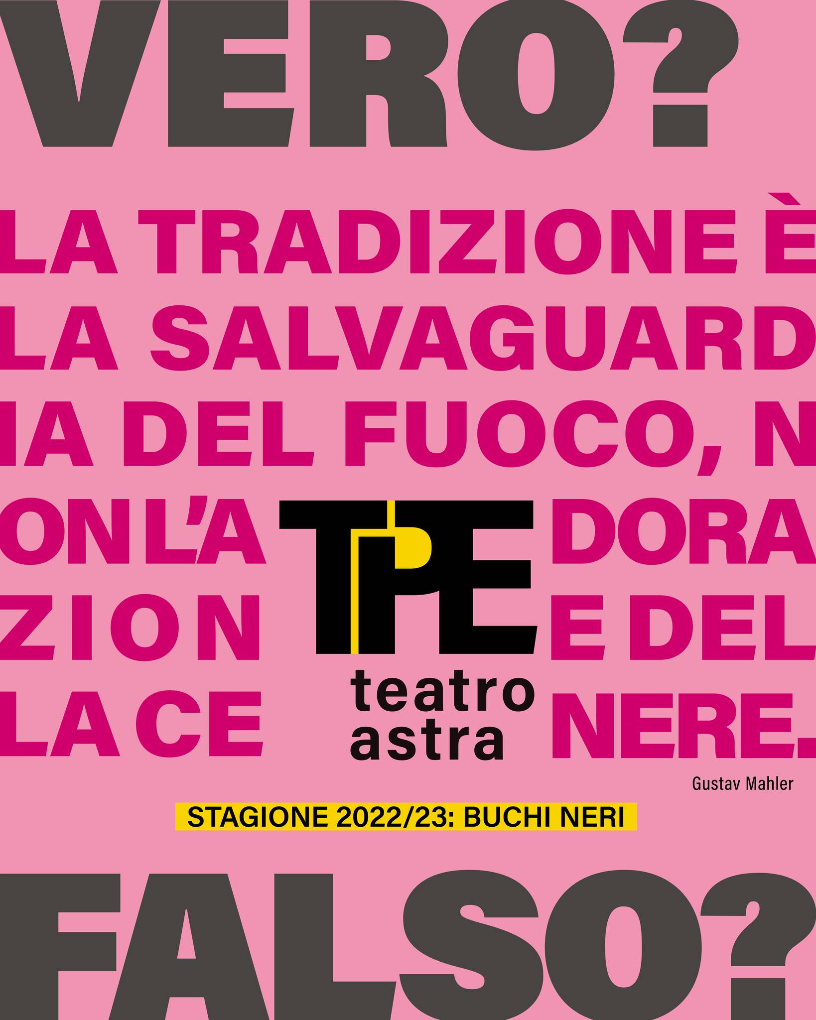 Il programma triennale di TPE – Teatro Astra vuole riflettere proprio sulla trasformazione in atto del nostro rapporto con la certezza e con la verità, esplorandole da vari punti di vista e attraverso la particolare lente del teatro. La Stagione 2022/23 s’intitola Buchi Neri e si concentra in modo specifico su come si sia trasformato il nostro rapporto con la verità scientifica.